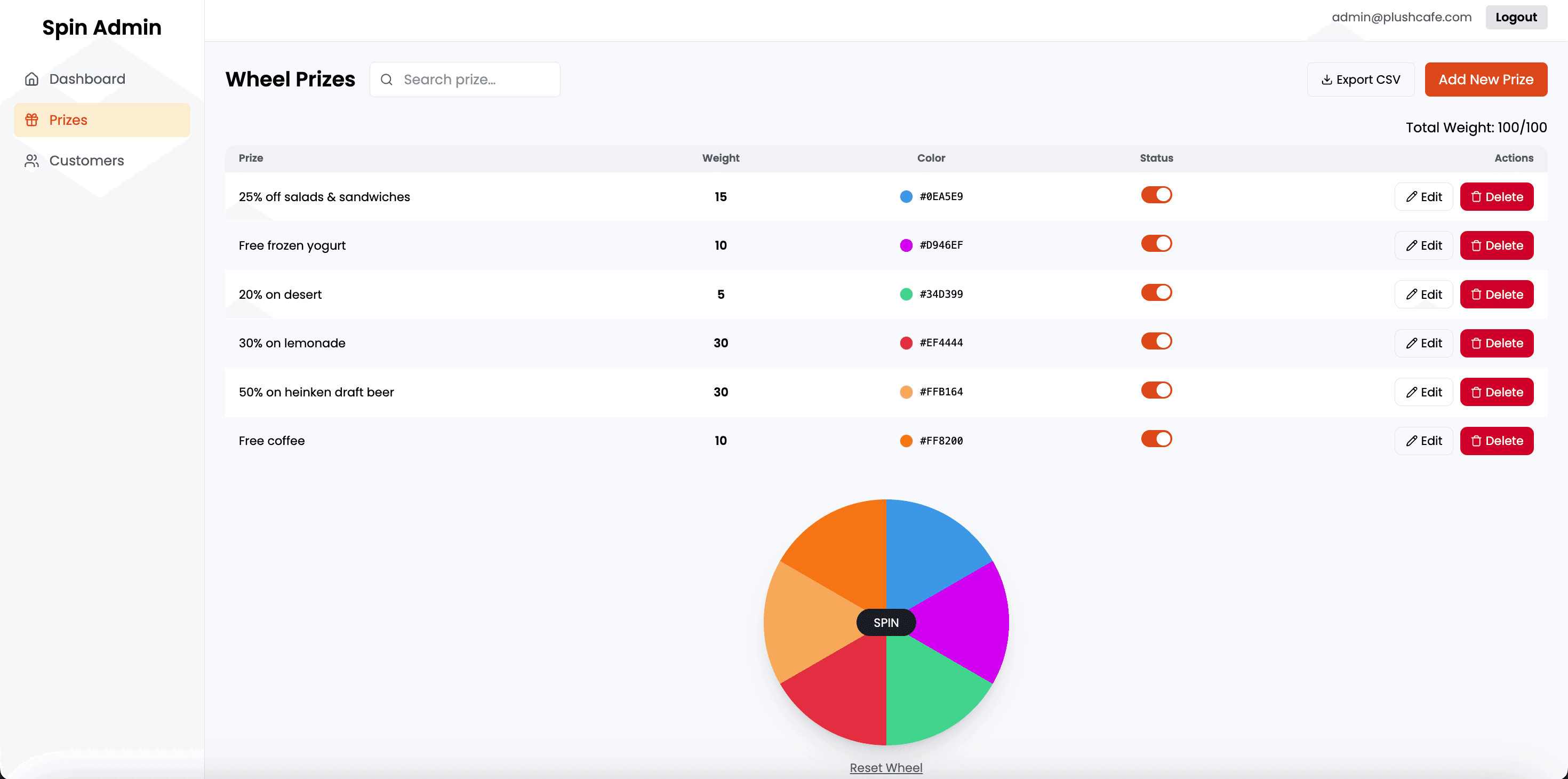 Spin & Win helps restaurant owners drive engagement, collect valuable customer data (like names and phone numbers), and increase repeat visits. It creates a shareable experience that encourages word-of-mouth promotion, while also giving owners full control over the prizes and odds. With a connected admin panel, you can manage your prize pool, monitor claimed offers in real time, and track customer participation—all while providing a seamless, contactless customer journey that enhances satisfaction and loyalty.